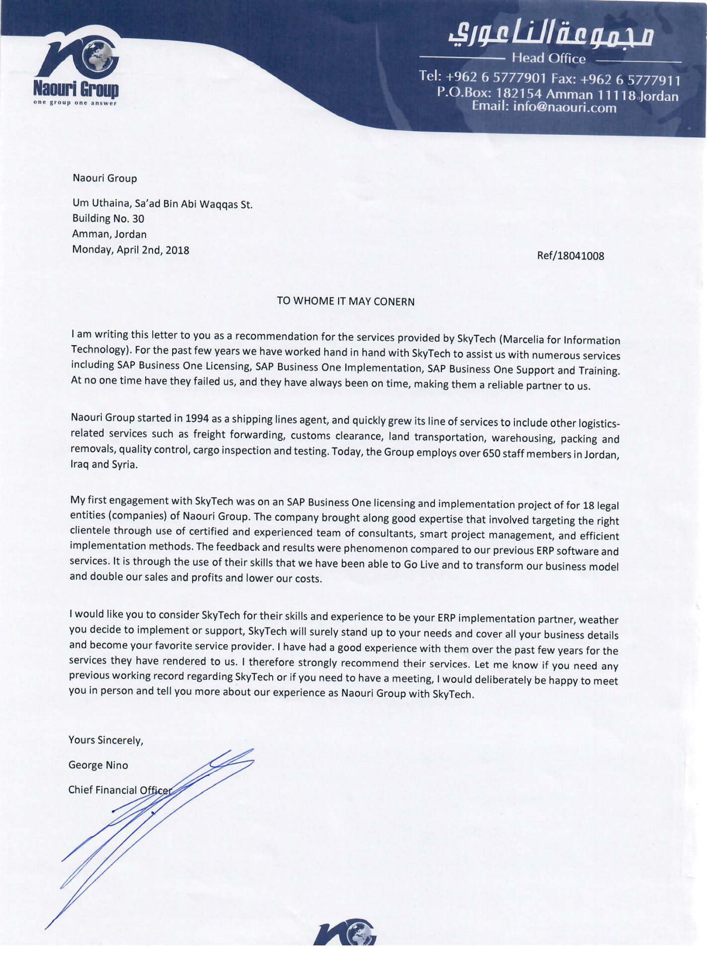 SAP and SkyTech offer us the most user friendly and high quality enterprise resources planning system.”